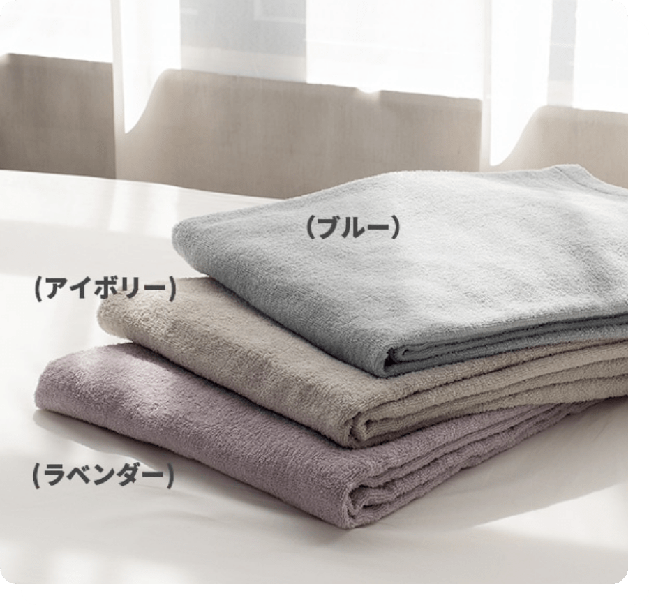 お部屋のインテリアに合わせて、 ブルー、ラベンダー、アイボリー の3色からお選びいただけます。