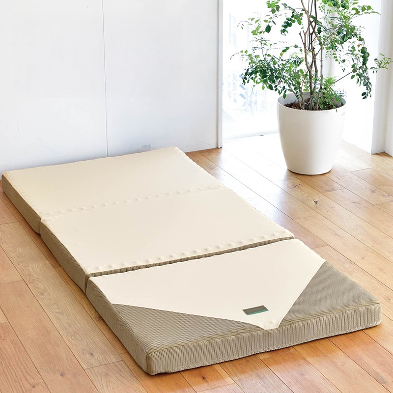 コンパクトに折りたたむことができ、中材を入れ替えることもできる便利な3つ折りタイプです。