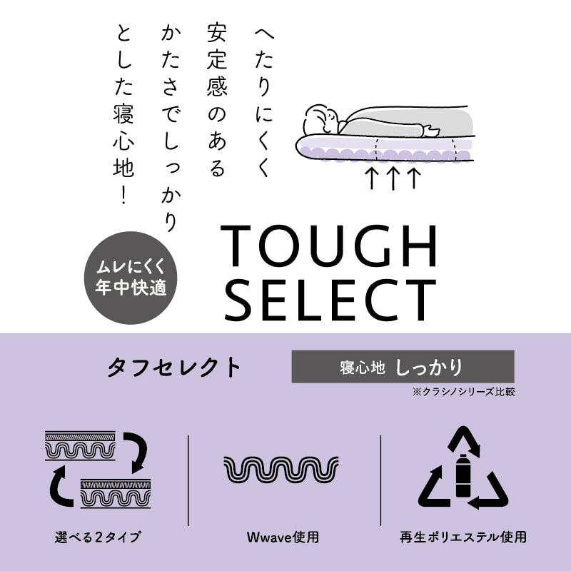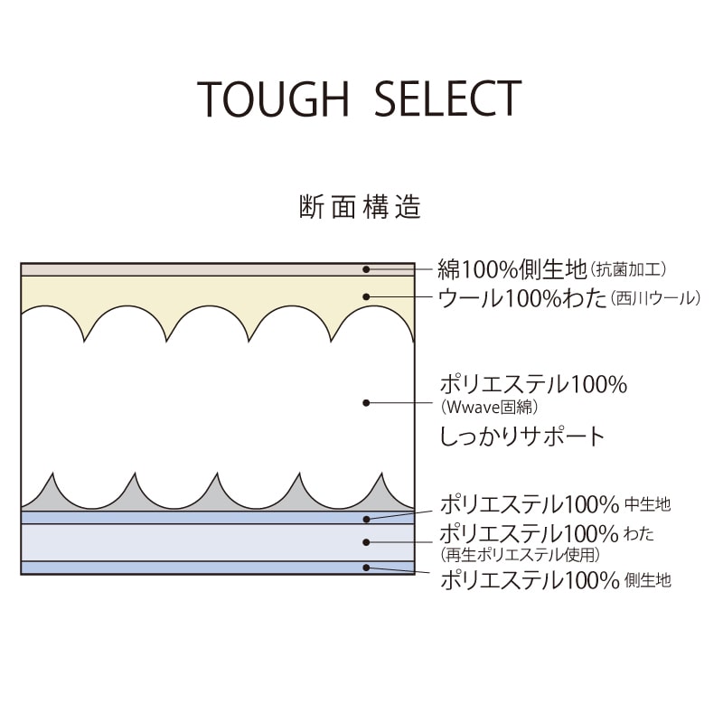 また、羊本来の自然な姿のままの飼育方法で育てられたノーミュージングウールです。【TOUGH SELECT敷きふとん(タフセレクト)】
