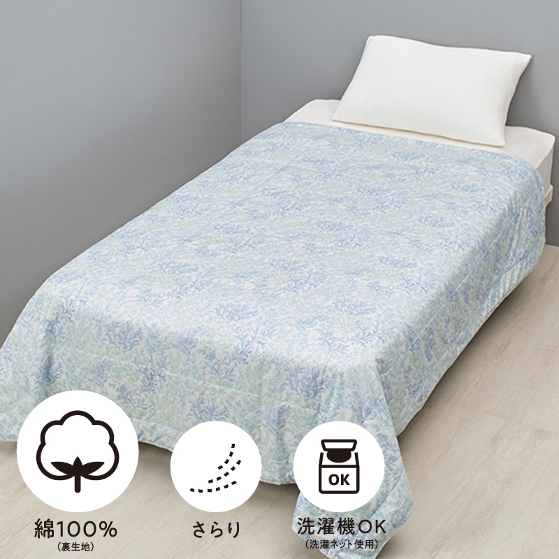 夏場には1枚でエアコンの冷え対策に、肌寒い季節にはお手持ちの掛けふとんに重ねて、1年中お使いいただけます。【洗濯機で洗える(洗濯ネット使用)】