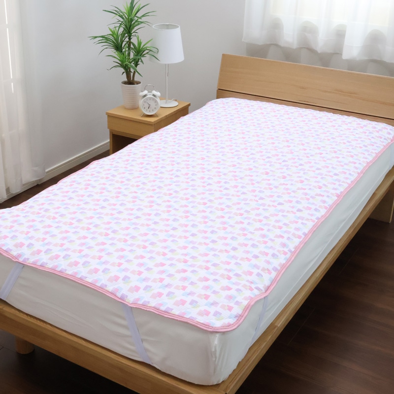 四隅にゴムバンド付きで、簡単に敷き布団やマットレスへの付け外しができます。