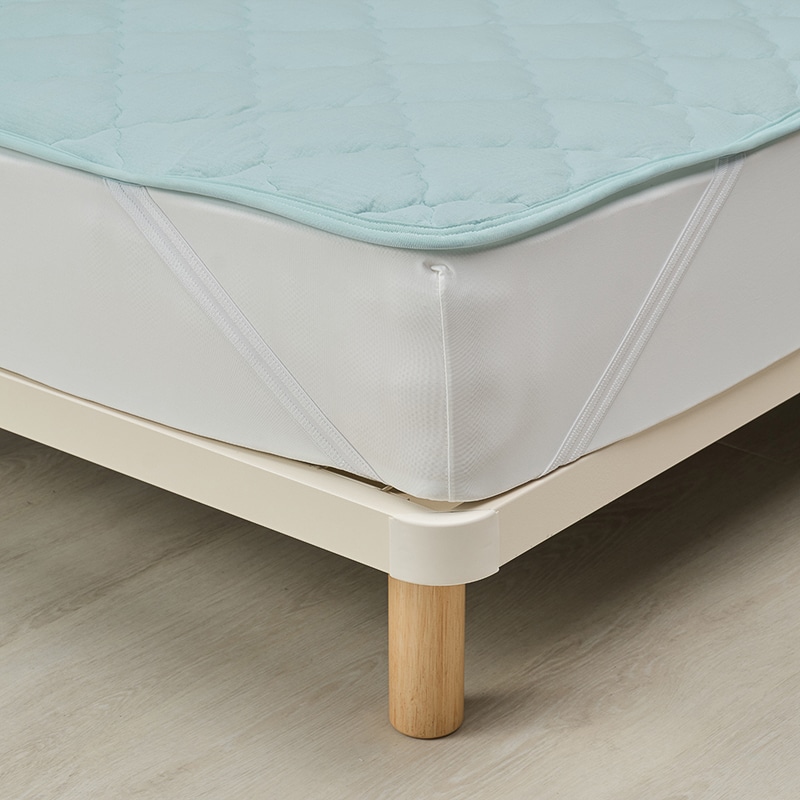 四隅のゴムで敷きふとんやベッドマットレスに固定できます。【洗濯機で洗える(洗濯ネット使用)】