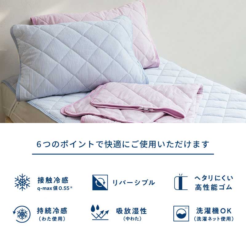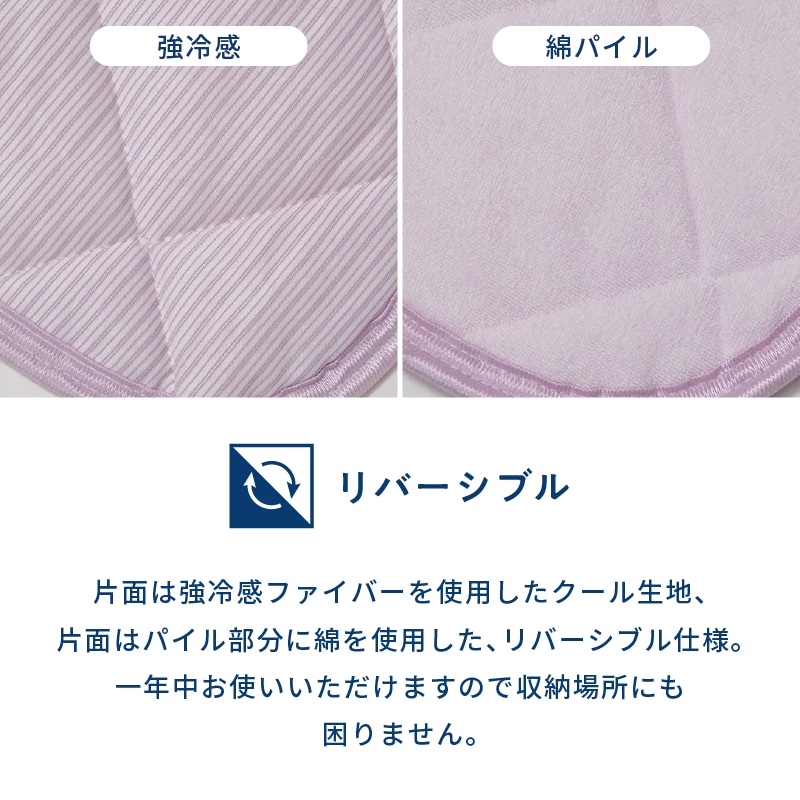 クール面とパイル面のリバーシブル仕様で、夏以外の季節にもご使用いただけます。【ゴム付き】