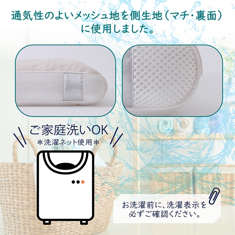 逆にまくらが高いと感じるときにはパイプを抜いて調節してください。【洗濯機で洗える(洗濯ネット使用)】