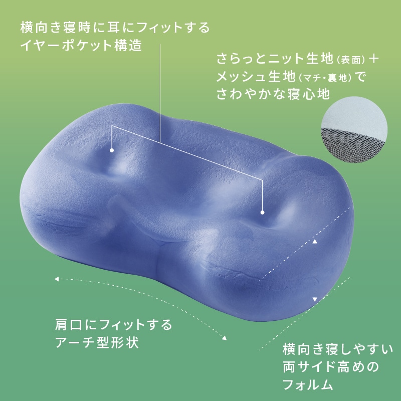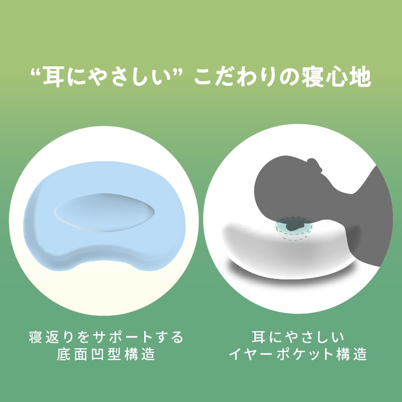 耳にやさしいイヤーポケット構造の枕。