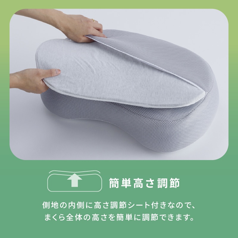 - まくら本体、高さ調節シートは洗えません。側生地を外して洗濯機で洗えます。