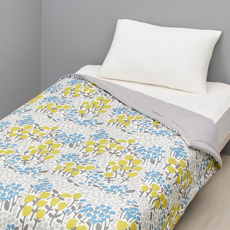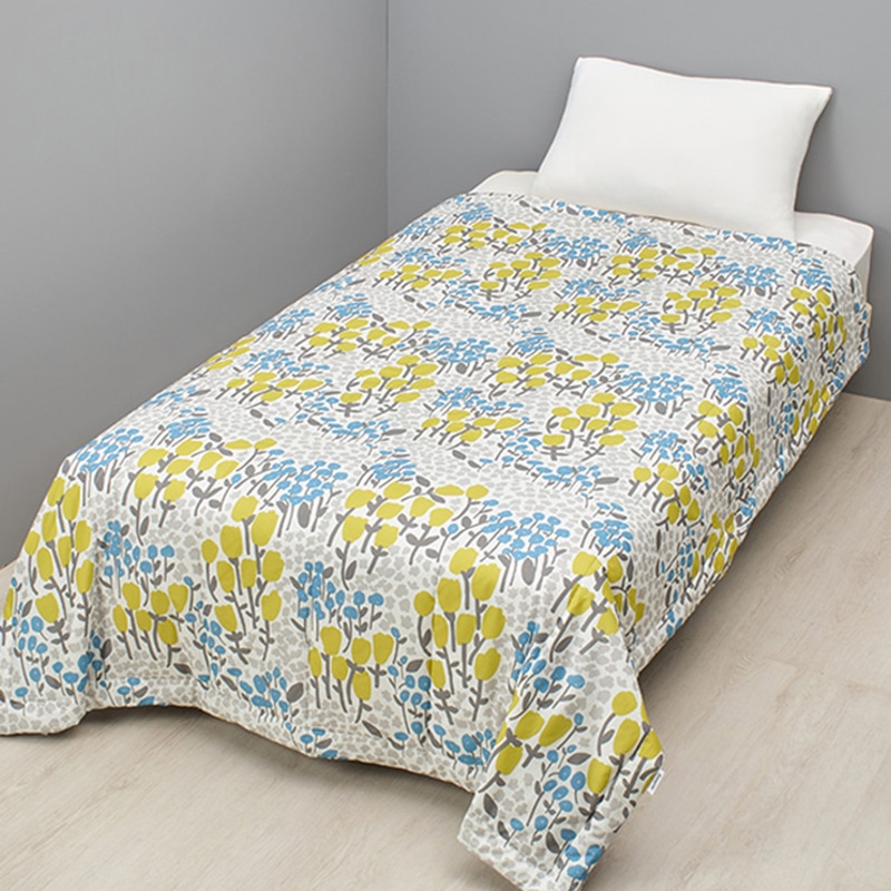 フレッシュなフラワーパターン「HUISKE(フィスケア)」。フィンランドの夏の風景、ゆっくりと流れる時間が感じられるデザインです。【さらりと心地よいキルトケット】