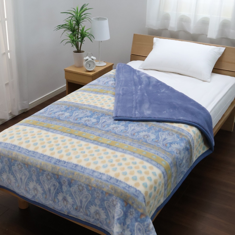 ウールのような温かみのある肌さわりと、2枚合わせのボリューム感が心地よい毛布です。