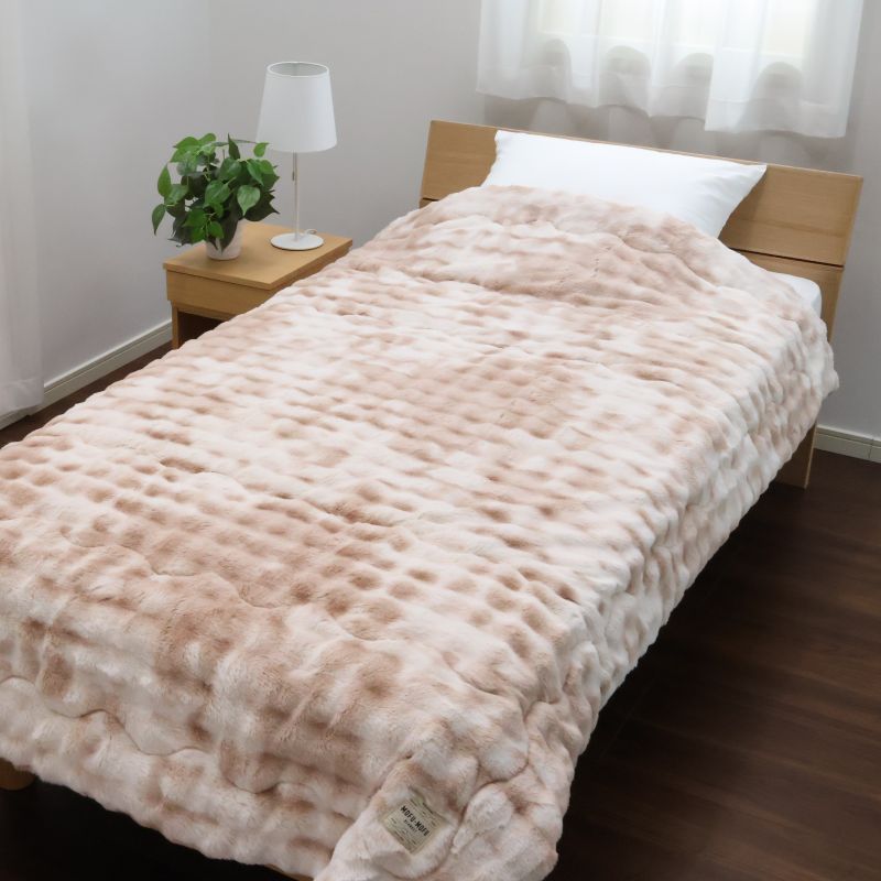 肌面の生地にナノサイズの備長炭を練りこんだ糸など速暖素材を使用した、ホッとねる毛布。【あったか機能綿を使用】