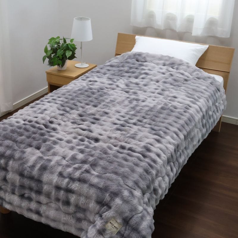 肌面の生地にナノサイズの備長炭を練りこんだ糸など速暖素材を使用した、ホッとねる毛布。【あったか機能綿を使用】