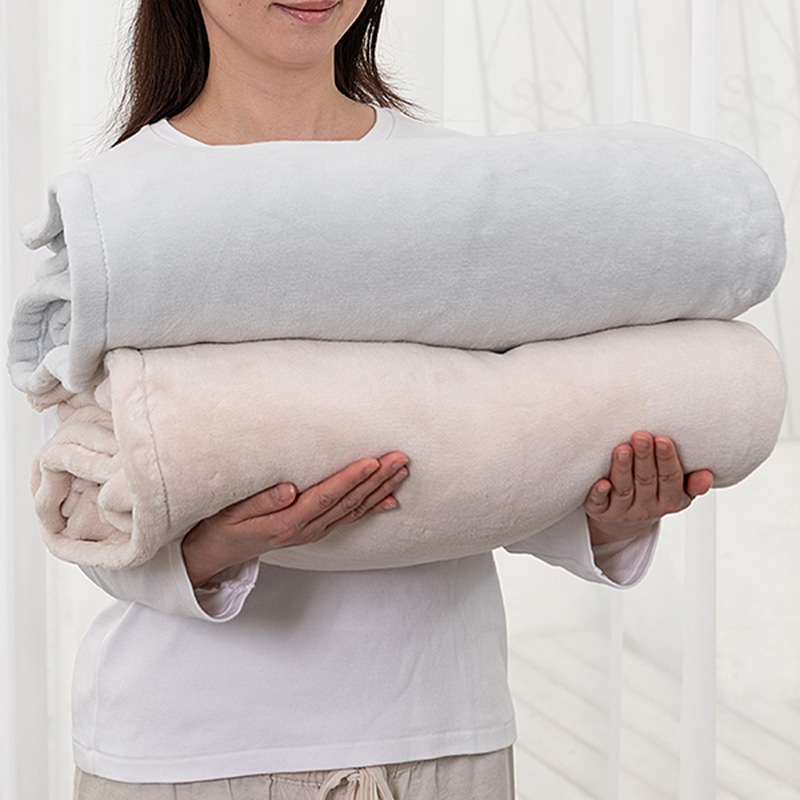 「冬場、羽毛布団で寝ると汗ばんでしまう」という方は、ぜひ布団の内側にこの綿毛布を。汗を吸収し、優しい温もりを感じられます。【日本製(泉大津)の綿毛布】