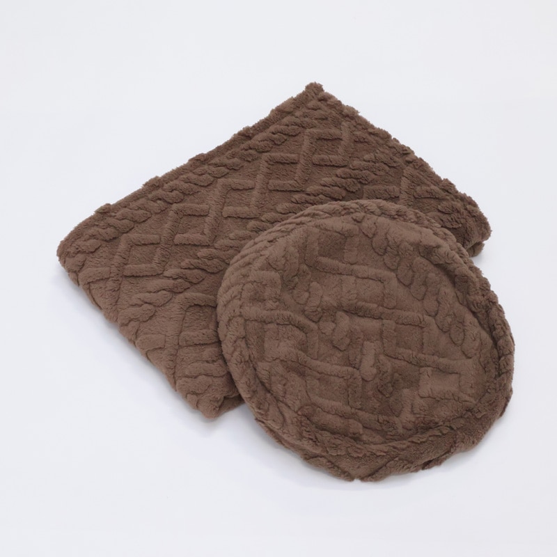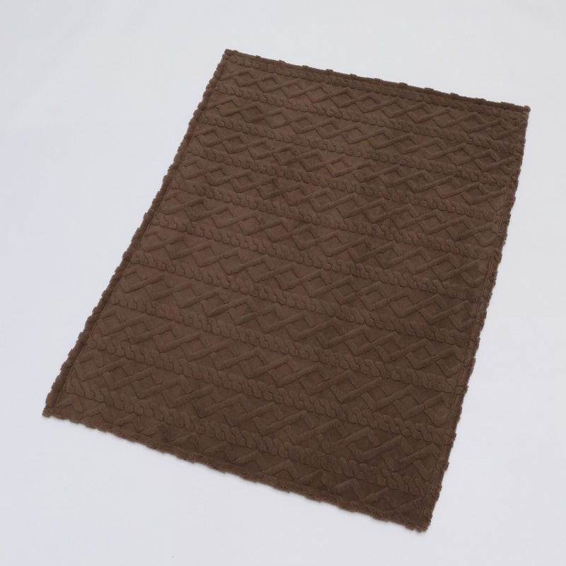 ケーブルニット調のデザインを毛足の短長で表現することで、ぷっくりとした風合いになりました。