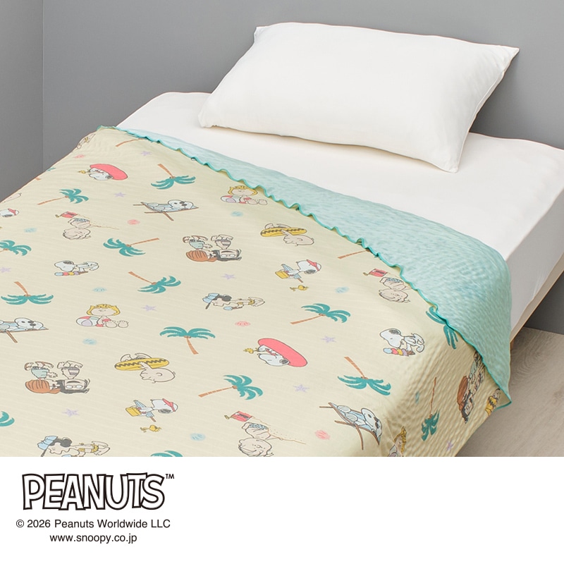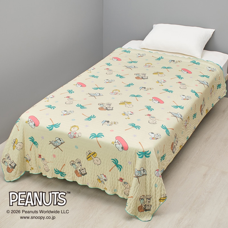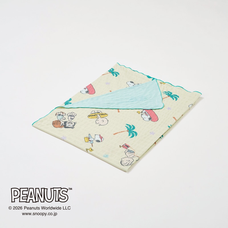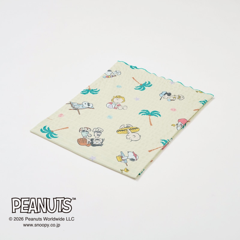 スヌーピーと仲間たちがビーチでとびきりハッピーに楽しむ様子を描いたデザインです。