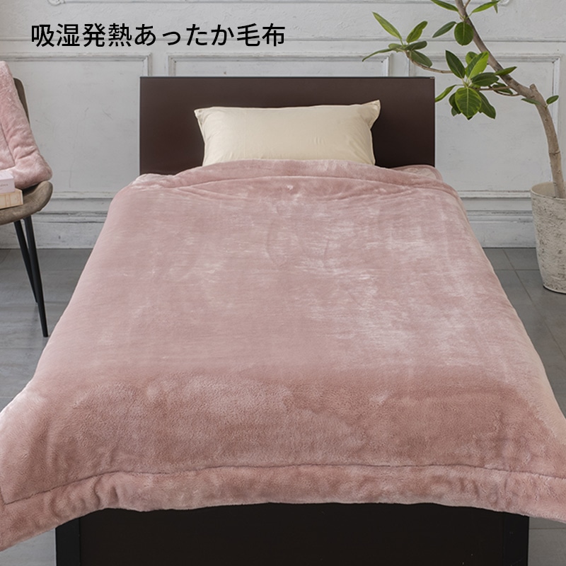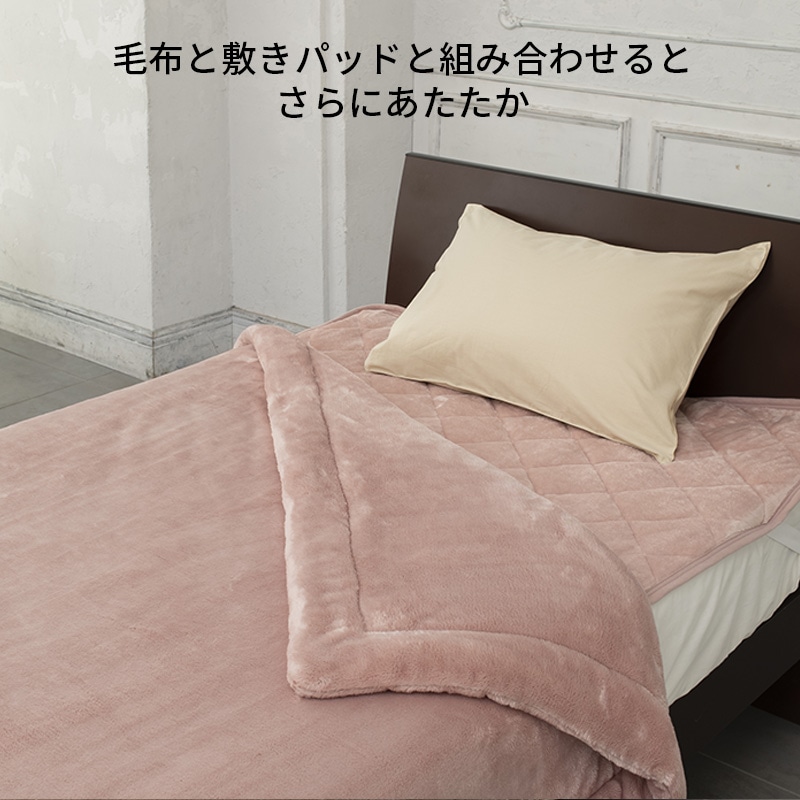 吸湿発熱あったか素材の毛布、敷きパッドの2点セット。