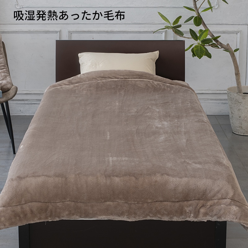 吸湿発熱あったか素材の毛布、敷きパッドの2点セット。