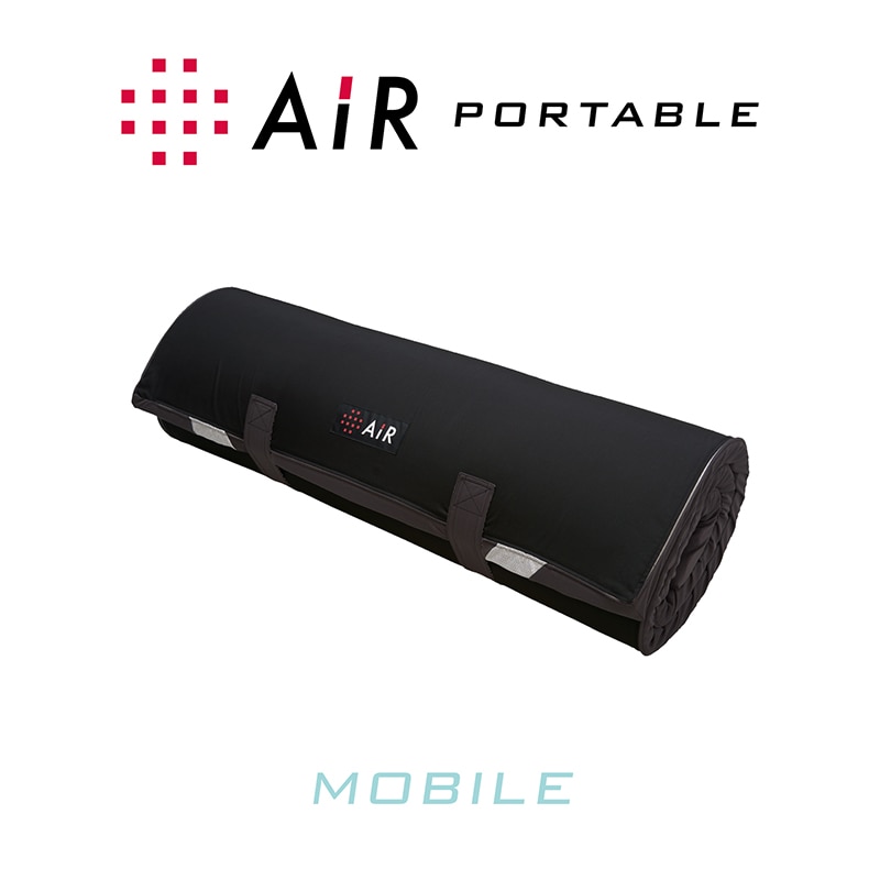 眠りのチカラを持ち運ぶ。[エアーポータブル]モバイルマットアスリートの遠征、ビジネスパーソンの出張など、外泊時のホテルなどで快適な眠りを提供する持ち運び用の[エアー]です。