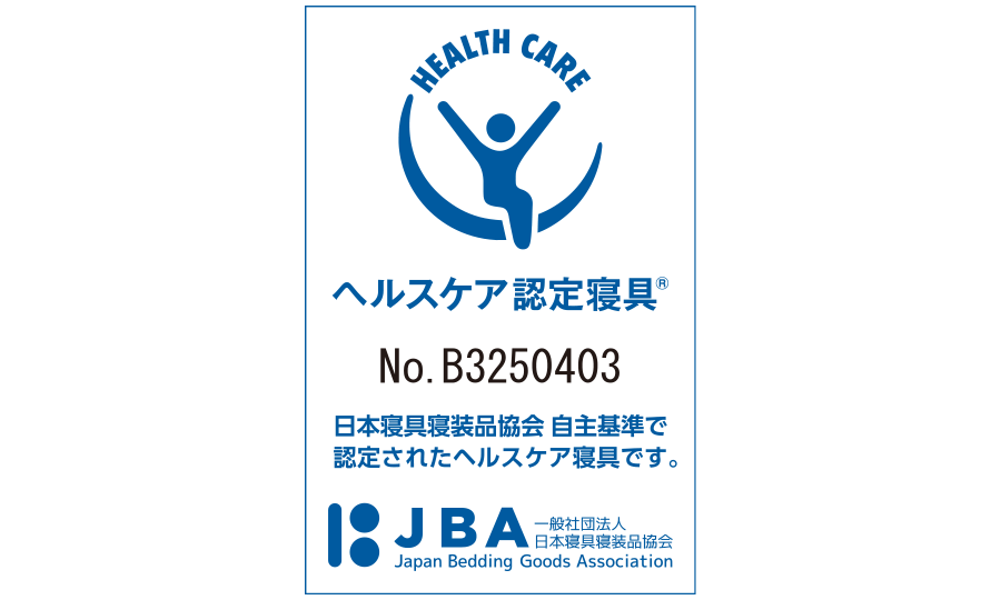 ヘルスケア認定商品健康の保持・増進、介護予防を通じた健康寿命の延伸に資する商品にのみ認定されるヘルスケア認定寝具®認定された安心の商品です。