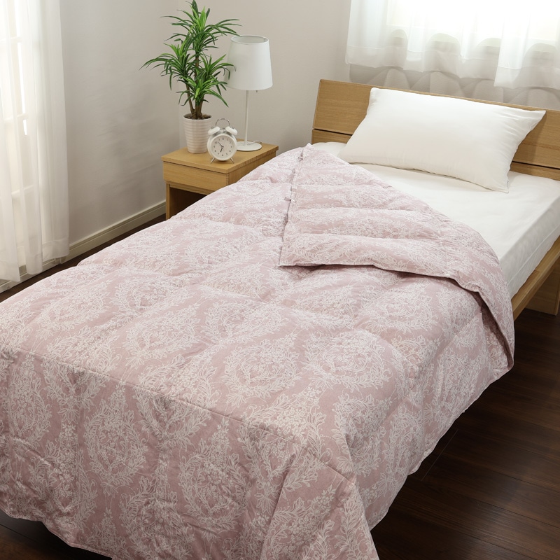 詰めものは希少なダウン93%を贅沢に使用。高品質な羽毛が、薄手でも体温のあたたかさを優しくキープします。