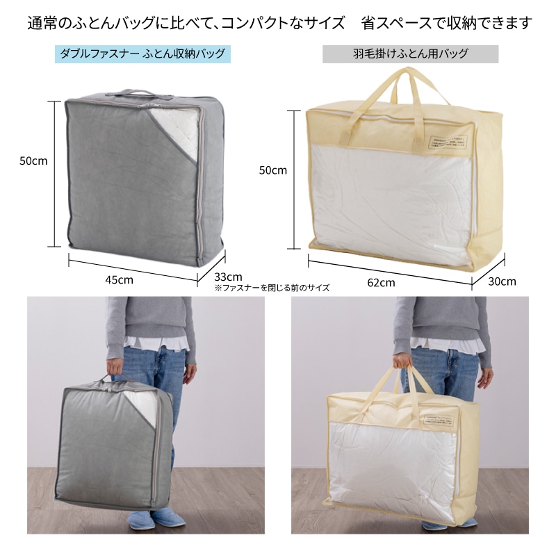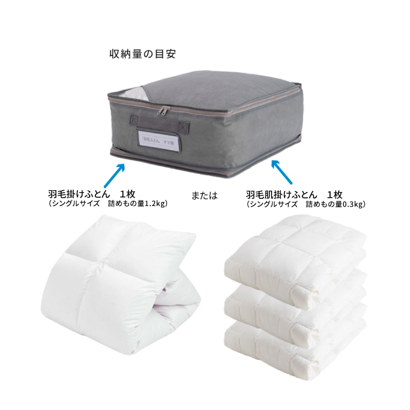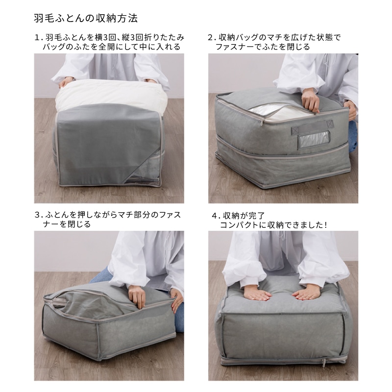 【羽毛ふとんをファスナーでコンパクトに収納】