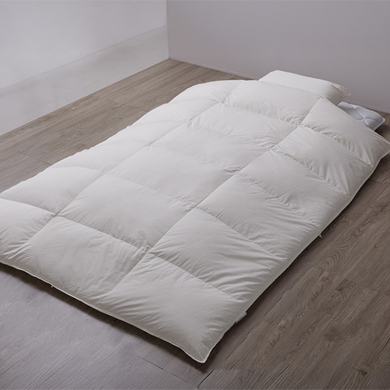 選び抜いた良質な フランス産ダックの羽毛を丁寧に洗浄、国内で「バイオアップ(R)加工」を施し、羽毛本来の保温力を引き出します。
