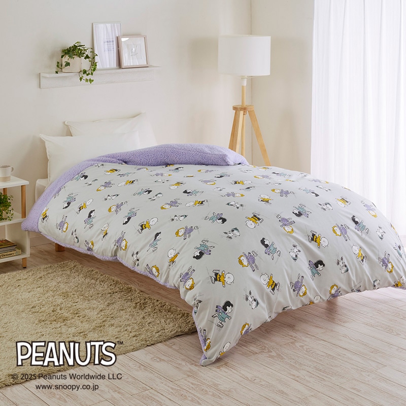 スヌーピーと仲間たちがスケートを楽しむかわいいデザイン。【肌面と衿元はふわふわ生地】