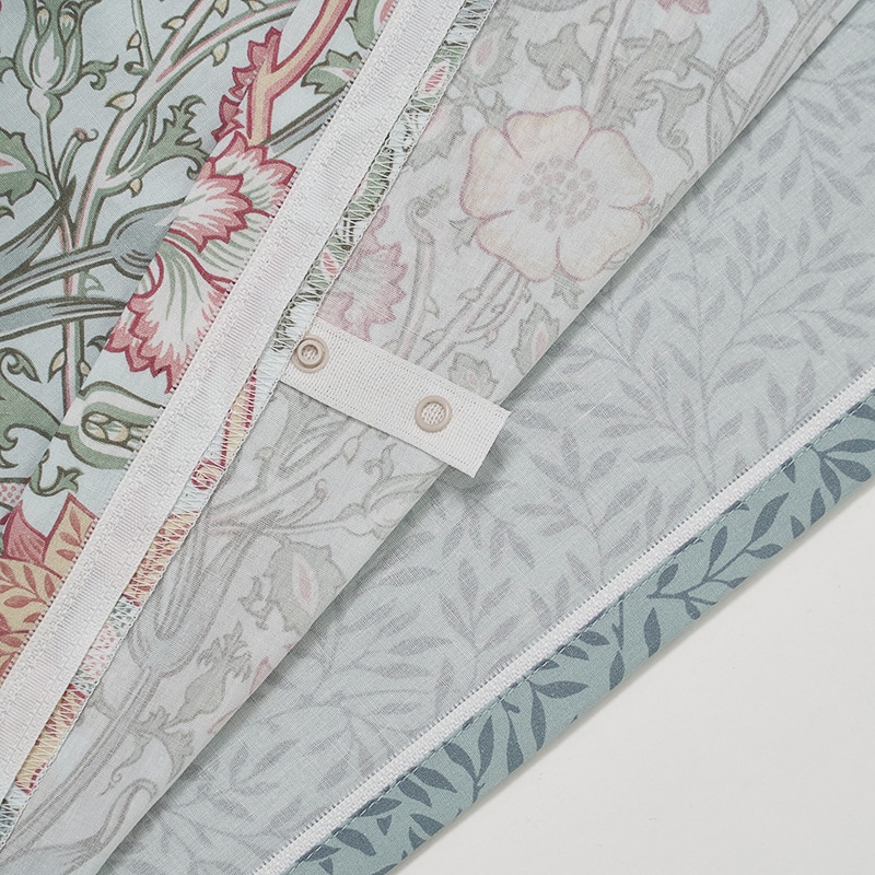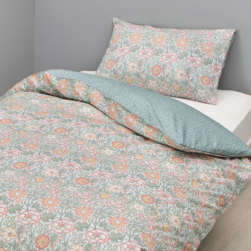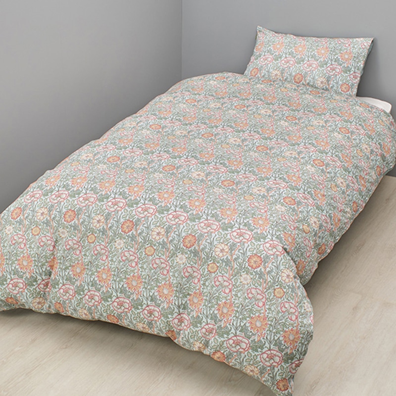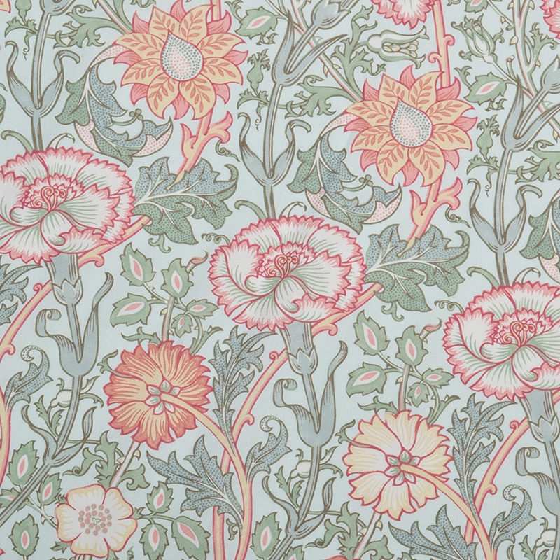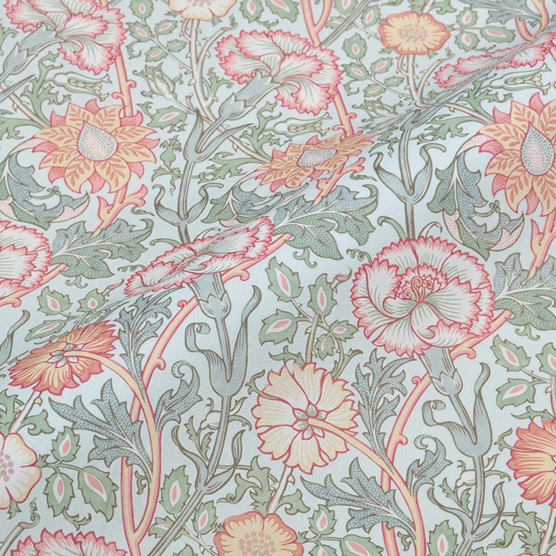 バラとカーネーションが曲線を描き、絡み合うように広がる「ピンク アンド ローズ」柄は、1890年にウィリアム・モリスによってデ