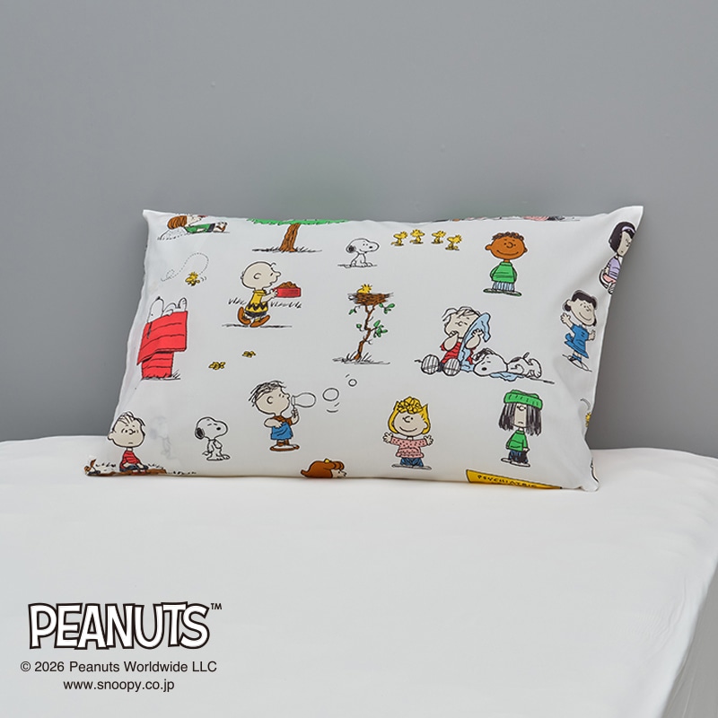 「ピーナッツ」に登場する個性豊かで魅力的なPEANUTSの仲間たちはお部屋を楽しく彩ります。【綿100%生地の枕カバー/まくらの出し入れが簡単・便利】