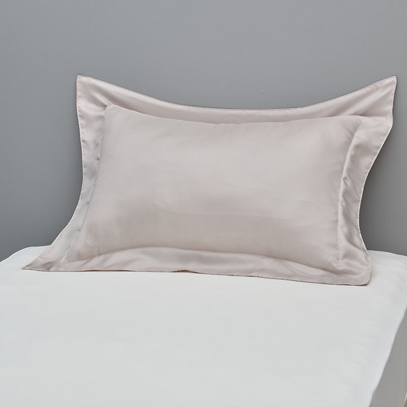 上品な額縁式(四方フラットフリル付き)の枕カバー。中かぶせ式で、枕がずれにくい仕様です。【洗濯機で洗える(ネット使用)】