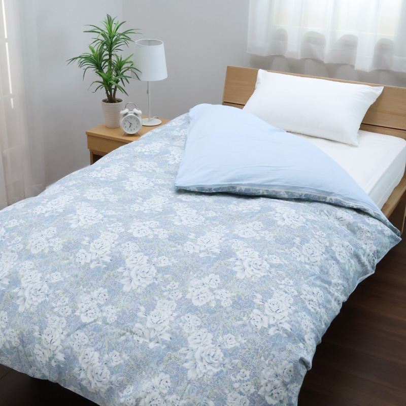 しっかりと結べるひもが8ヶ所ついていて、寝ている間も掛けふとんから外れにくい。