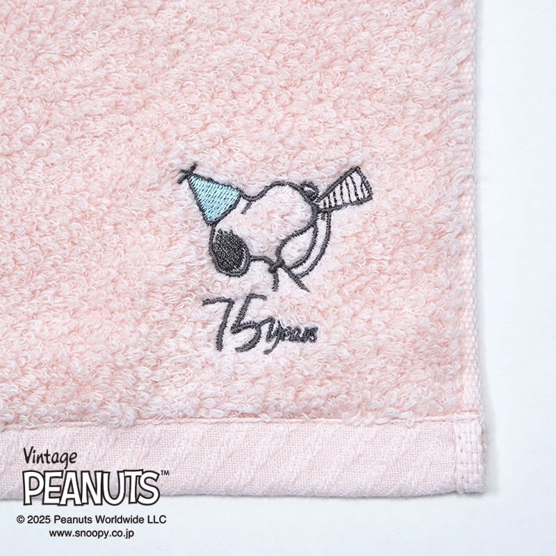 PEANUTSコミック誕生75周年を記念したアニバーサリーデザインの刺しゅう入り。【ふんわり軽いやわらかさの『かるわた』】
