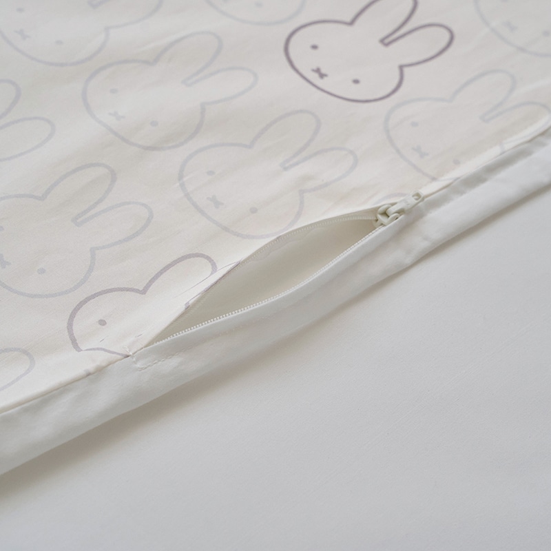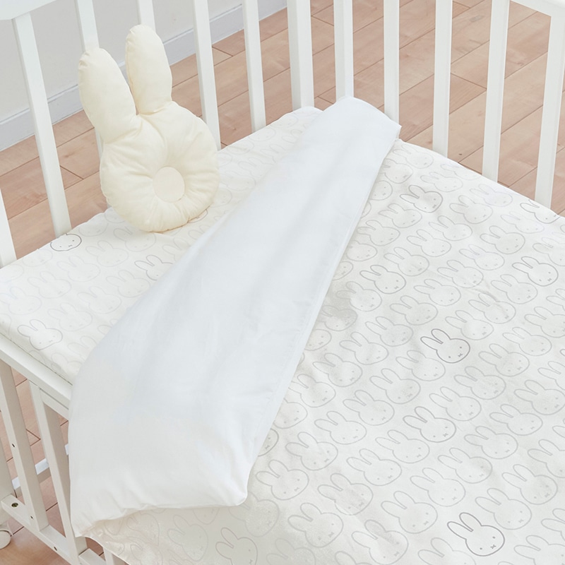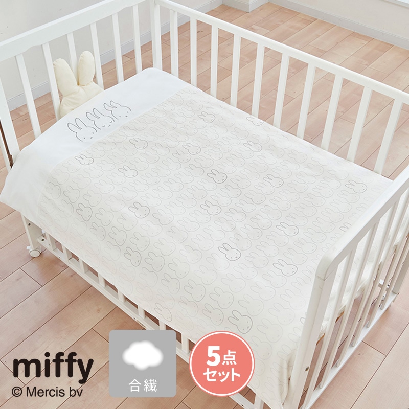 シンプルでかわいいプリントのカバーとミッフィーのお顔型のまくらがかわいいベビーふとんセット。