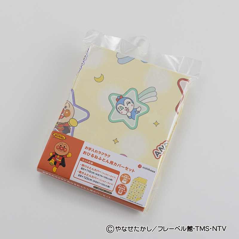 アンパンマンとなかまたちが描かれた、お昼寝ふとん用カバー2点セットです。