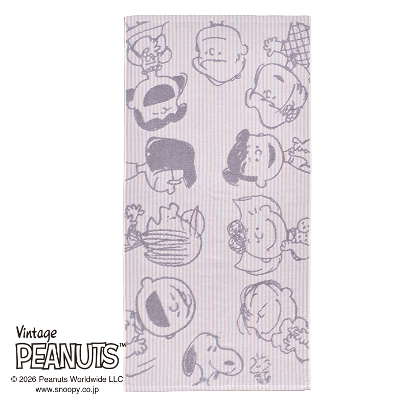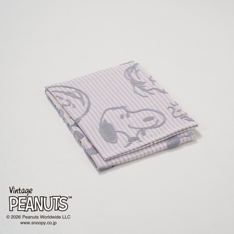 ガーゼ地に無撚糸パイルでスヌーピーと仲間たちが浮き出るデザイン。