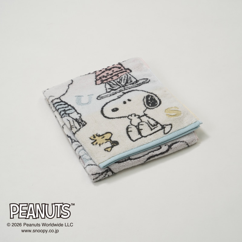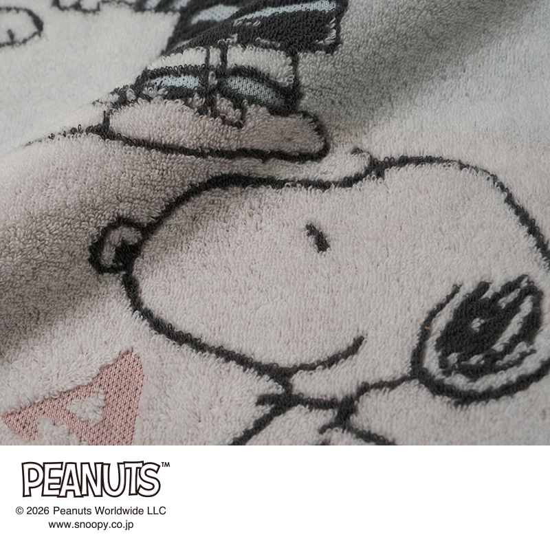 無撚糸を使用したタオル地に、スヌーピーと仲間たちをカラフルに表現しました。