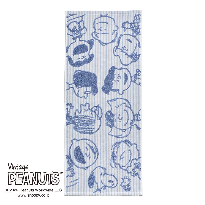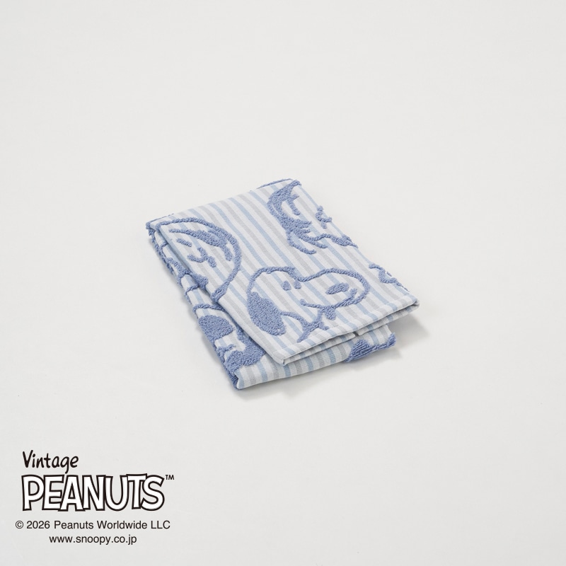 ガーゼ地に無撚糸パイルでスヌーピーと仲間たちが浮き出るデザイン。