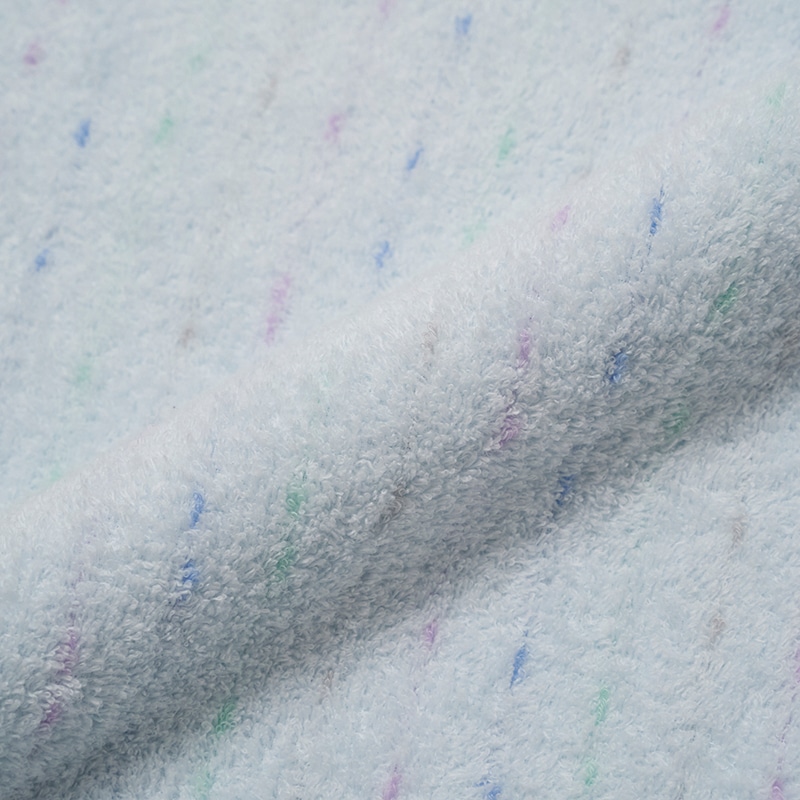 パイルの色玉を雨に見立てたデザインがかわいいタオル。