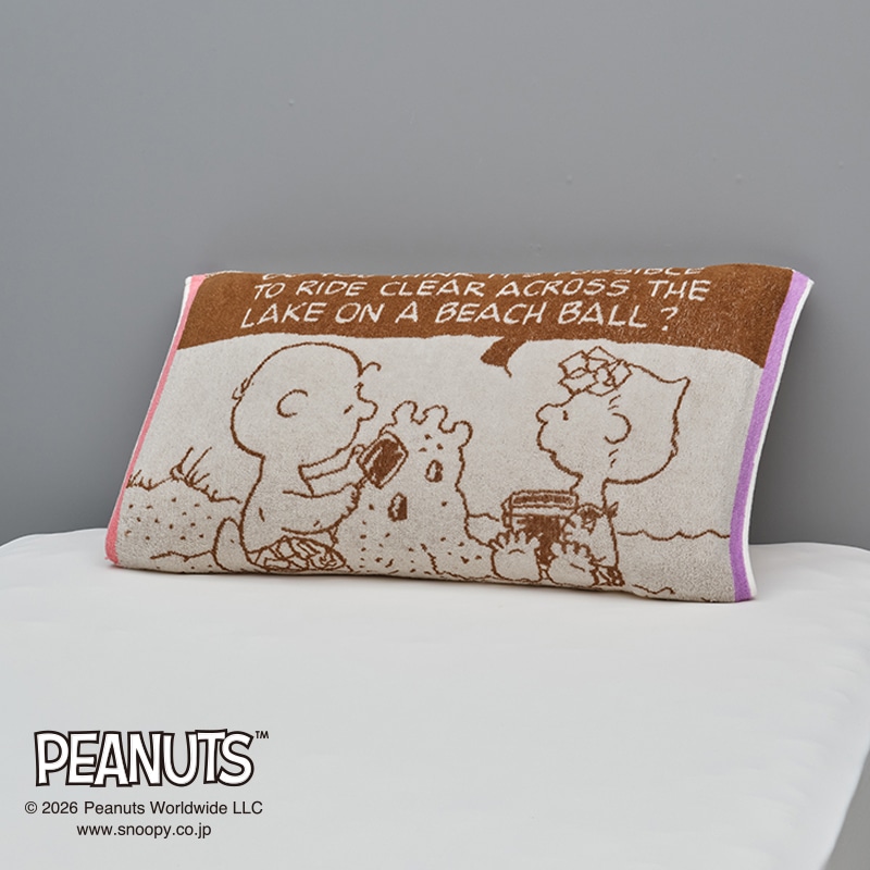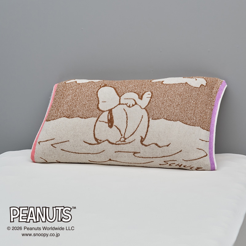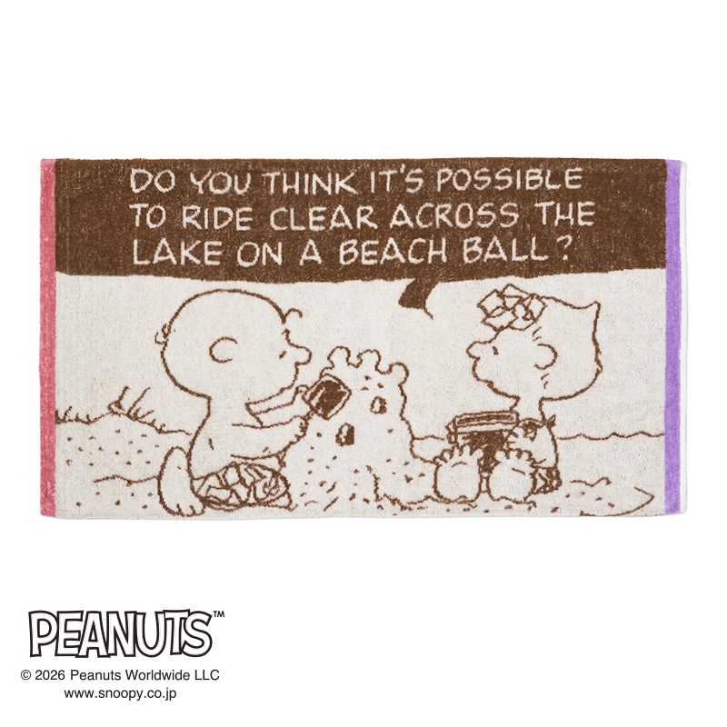 スヌーピーと仲間たちがビーチで楽しむ様子を描いた、夏らしいデザインです。【リバーシブル】