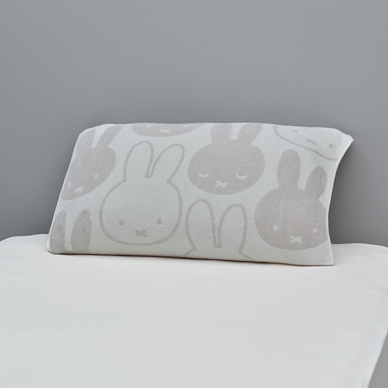 色々な表情のミッフィーが描かれた、かわいいデザインです。【枕にフィットするのびのびピローケース】