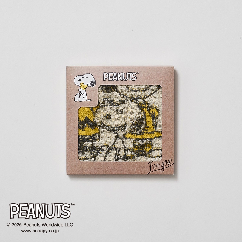 やわらかな肌ざわりのミニタオルです。【スヌーピーの箱パッケージ入り】
