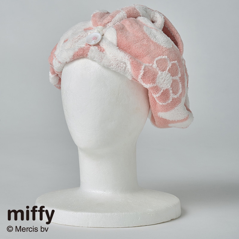 ミッフィーとボリス、お花のモチーフがかわいいデザインのヘアキャップです。【クイックドライ ふわりー生地のヘアキャップ】